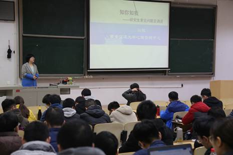 11月29日,生命学院联合机械学院开展心理健康活动,邀请西安交通大学大学生心理健康中心的闫琼老师为2018级研究生新生作题为 “知你知我——研究生常见问题及调适”讲座。