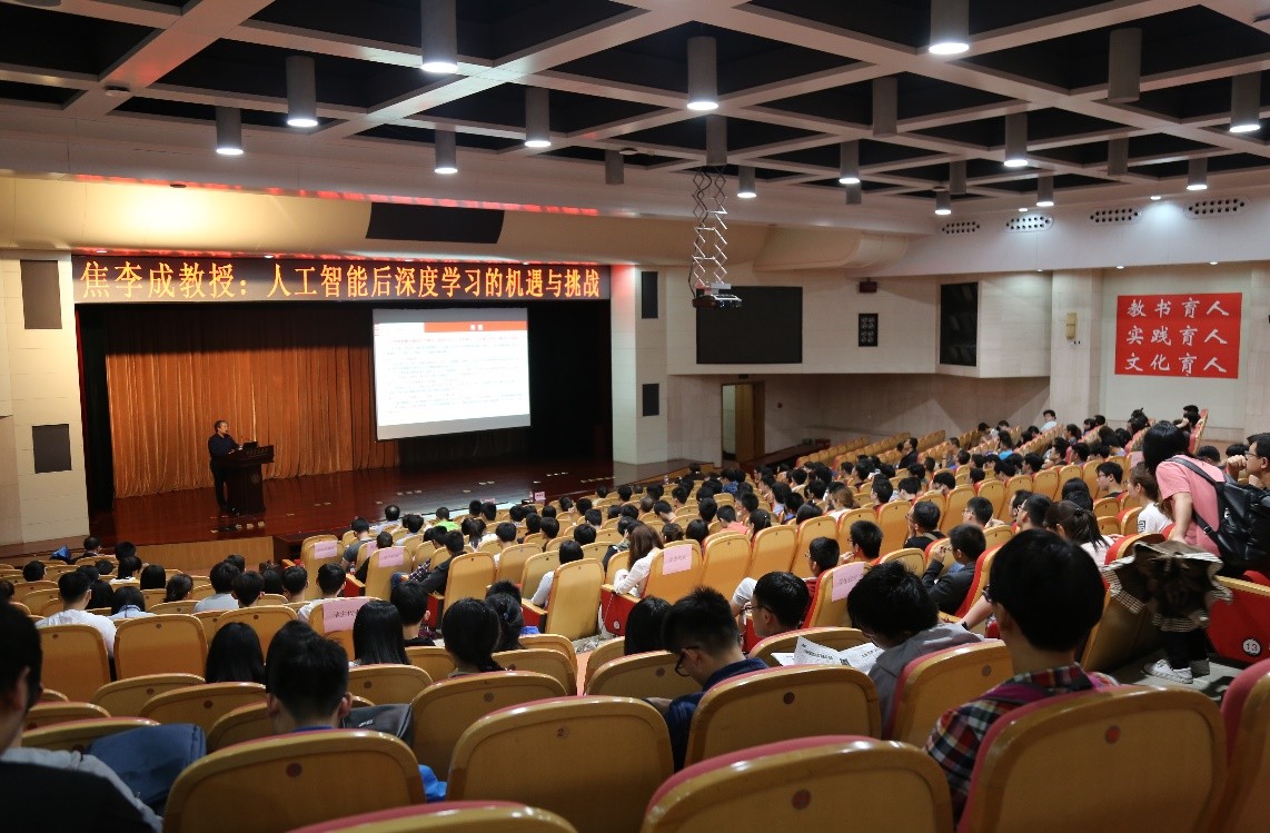 6月8日下午,西安电子科技大学智能感知与图像理解教育部重点实验室主任焦李成教授来访生命学院,并在主E多功能报告厅作了题为“人工智能时代的后深度学习挑战与思考”的学术报告。