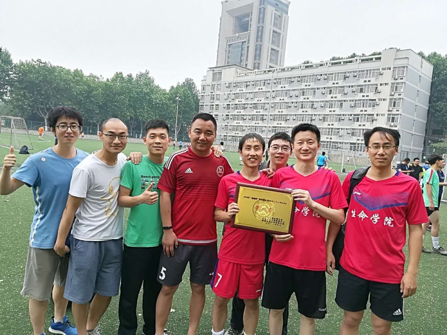 5月19日上午,“人才出众、始于足下”2018年“金相杯”五人制足球赛圆满闭幕。此次比赛由西安交大校工会、体育中心、材料学院主办,共有18支教工队伍、5支学生队伍参加。在徐峰副院长的带领下,生命学院组织了一支热爱足球、训练有素的教工队伍参加比赛,经过了近两周的紧张激烈角逐,生命学院教工足球队以饱满的激情顽强拼搏、驰骋赛场,荣获了第四名的好成绩。极大地鼓舞了教工门积极参加教工体育锻炼和比赛,增强身心健康的热情。