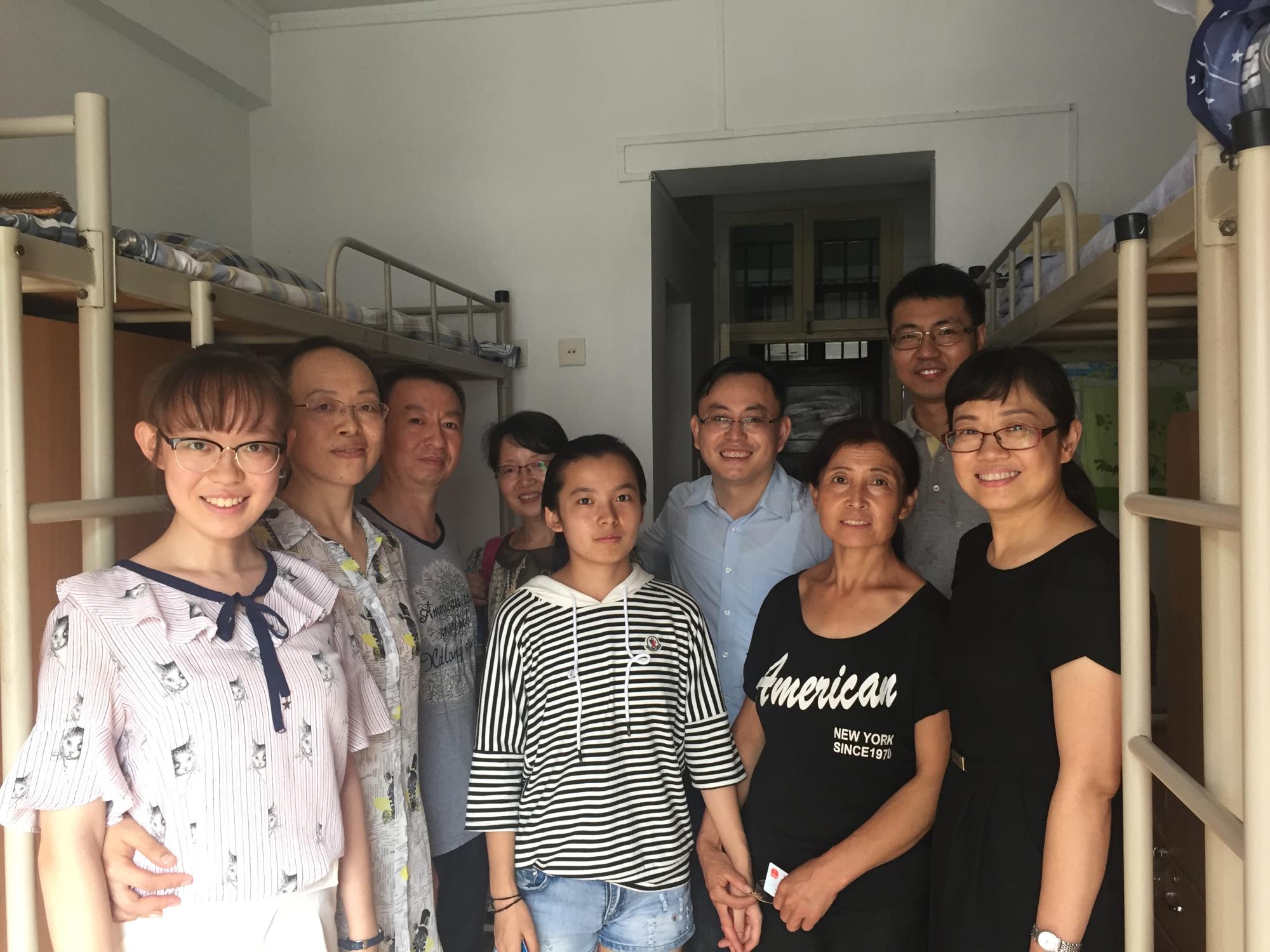 走进宿舍,刘茹书记与刘健康院长首先与学生和家长聊起了家常,详细了解学生的家庭情况及生活状态。“从哪里考来的啊?”“最近非常热,看看空调能不能使用?”“有无家人陪送?”等,在每一间宿舍,刘茹书记、刘健康院长和其他院领导都亲切地对新生和家长表示慰问并合影,叮嘱新生照顾好自己,尽快适应大学生活,融入新环境,遇到困难时主动与辅导员、班主任以及学院联系,共同解决问题。