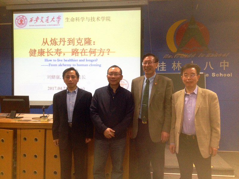 在两所中学的宣讲中,刘院长和张教授分别以“从炼丹到克隆:健康长寿,路在何方?”和“中国人类起源解读”为题进行了宣讲。二位教授激情饱满,演讲内容广博,热点纷呈,中学师生群情澎湃,掌声不断。演讲活动大大激发了学生们对研究、探索的兴趣,坚定了报考西安交大的决心。桂林中学的听讲师生多达五百多人,十八中听讲师生也达二百多人。在每场宣讲后,教授们都耐心地回答学生们的提问,而且在十八中宣讲结束还接受了学生记者团的采访。