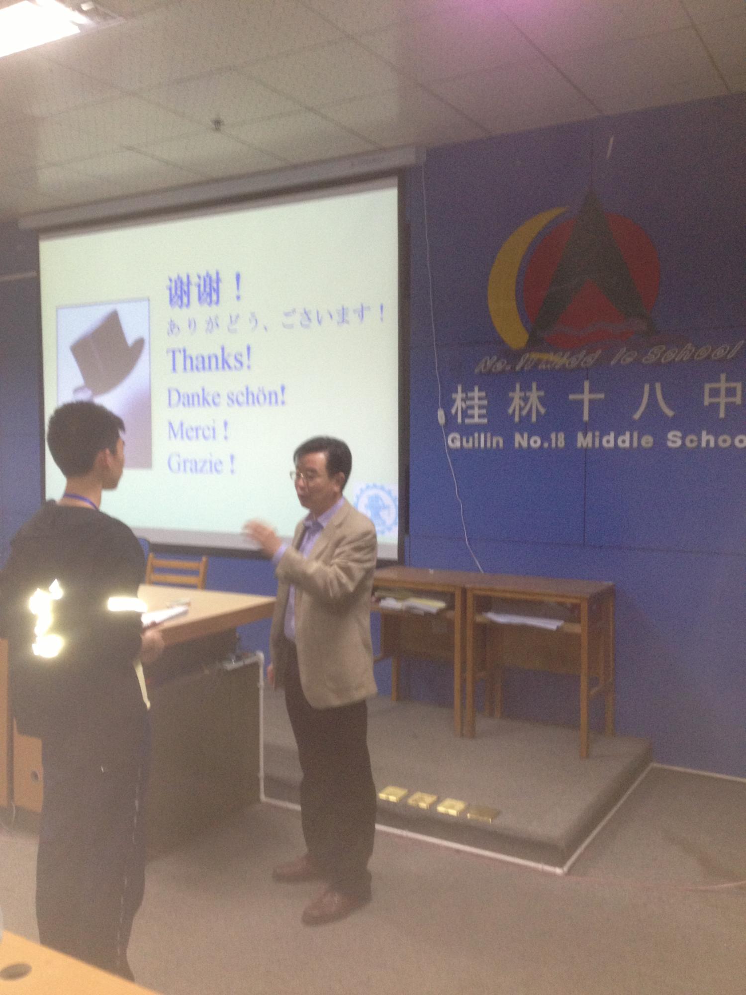 应广西招生组组长张建保副院长邀请,生命学院刘健康院长、张虎勤教授和孔令洪副教授于4月20-22日赴广西桂林中学和桂林十八中进行了科普宣讲。活动受到了当地中学领导、老师和学生们的热烈欢迎,赢得了很好的宣传效果。