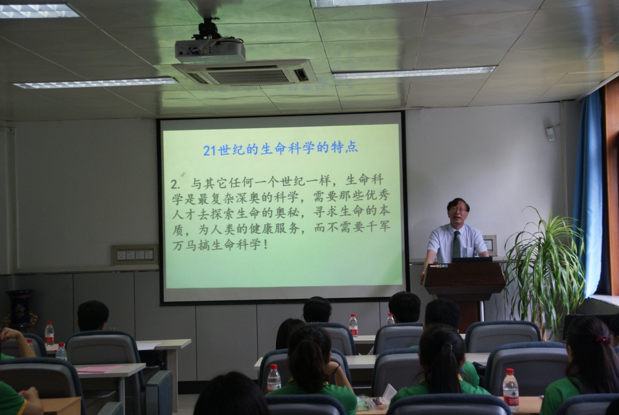 刘建康院长对来自全国各地学生的到来表示热烈的欢迎,并介绍了西安交大生命学院的独特优势,从学院组织结构、学科建设、师资队伍、科研实力、人才培养等多方面对生命学院进行了简要的介绍。随后各系、所、中心主要负责人张镇西教授,王珏教授,陆明珠教授,吴道澄教授,杨铁林教授等对相关学科专业的研究领域进行了说明。龙跃副书记,龙建纲教授,王冰玉老师就实验平台建设,毕业生就业去向等学生关心的问题进行了详细的解读和说明。