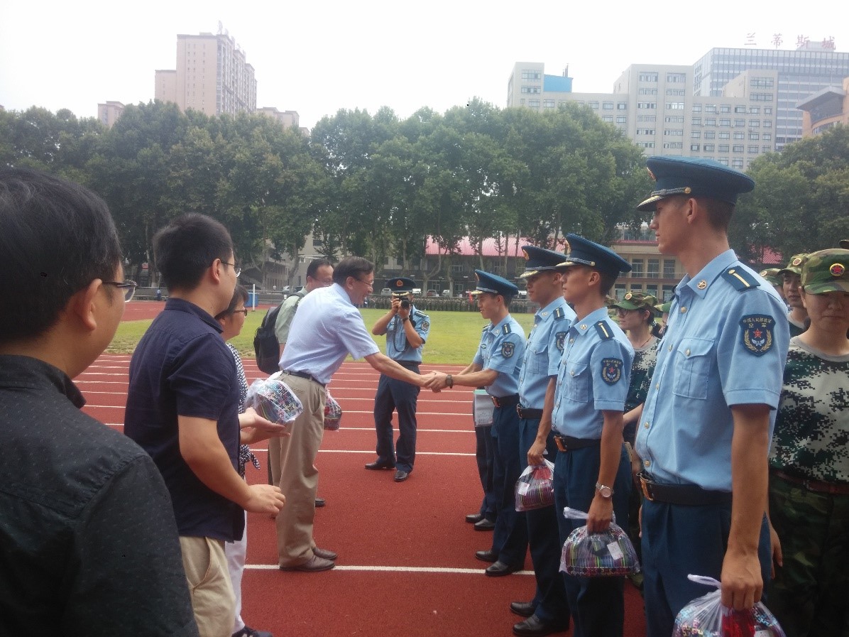 8月30日上午,我院老师慰问了2016级参加军训的新生及承训教官。学院院长刘健康教授、分党委副书记龙跃老师、院办主任马西萍老师、分党委秘书庞瑞老师、2016级本科生班主任刘华东老师、杨哲老师、杨清振老师和赵琳老师参加了慰问活动。