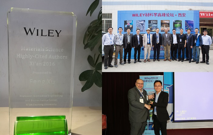 4月28日,徐峰教授受邀参加于西安电子科技大学举办的“Wiley材料学高峰论坛”,并作了题为“基于水凝胶材料的细胞微环境工程及其生物医学应用” 的主题报告。Wiley 国际出版集团授予徐峰教授“材料科学高引作者奖”。