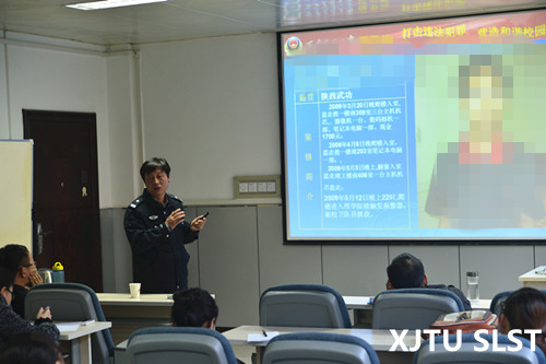 高鸿洲队长通过图片和视频,生动地讲解了近年来发生在校园里的典型案例,揭示了重视人身安全、财产安全、心理安全、公共安全等安全的重要性,分析了犯罪分子作案手段和心理,分享了生活中的一些必备安全常识,如公共场合保管随身物品,不轻易相信陌生人等;以消防安全为重点,从火灾特点、自救逃生、初期扑救、日常隐患及预防等方面作了具体介绍。之后指出,作为青年的研究生,除了常规安全外,还要注意交友安全、旅游安全。内容具体丰富,讲解声情并茂,受到在场观众的热烈欢迎。