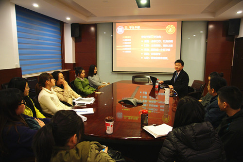紧接着,朱佳鸿博士从仁、智、工三个方面介绍如何做好学生活动。仁,就是要进一步建立健全培训体系,通过多学习、多观察、多交流、多思考,将问题想对、想深,不断提高学生干部的素质。智,要求学生干部进一步改变思维方式,丰富组织活动形式。工,则强调危机意识,提高学生组织的执行力。以仁、智、工为三个坐标轴,构建以成就一等人才,一等学问,一等事业,一等人格的广阔、自由与平等的立体成长空间。