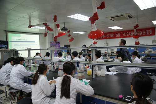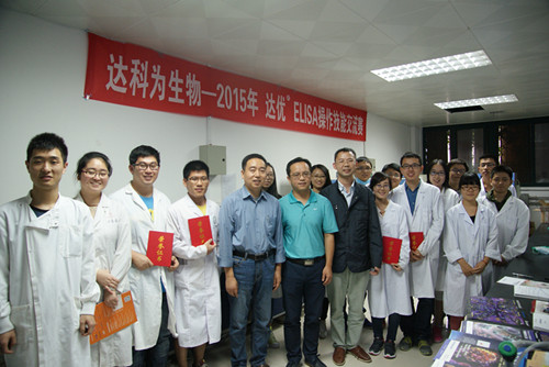 比赛活动分为三个环节:赛前培训、实验操作、评分总结颁奖。首先,达科为生物工程有限公司研发经理周翔先生为参赛选手做了一个精彩的赛前培训,使选手对ELISA实验有了一个比较全面清晰的认识。 紧张的比赛环节中,10组选手都认真的将所学知识应用到实验中,充分发挥自己的能力。最终,通过对每组实验数据的分析和总结,第1组选手王维嘉和曲晓艳获得本次活动一等奖,第4组选手秦川和王永耀获得本次活动二等奖,第3组选手杨贵芳和廖丹获得本次活动三等奖。