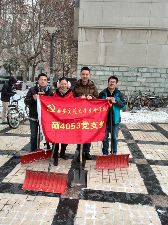 活动后,硕4053党支部同学总结说:“我们就将这次积雪清扫活动作为我们党支部志愿活动的第一步,真正做到从身边小事做起,我们的志愿之路会越走越宽,永不终结!”