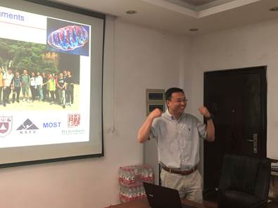 龙建纲教授主持了此次会议,代表学院致欢迎词并简要介绍了甘振继教授。甘振继教授于2013年底全职回国到南京大学建立了“骨骼肌线粒体代谢”实验室,研究方向为线粒体代谢重塑与疾病发生。主要研究成果以通讯作者在EMBO Mol Med.(封面故事)、PNAS、Cell Reports、Cell Research、J Biol Chem.等期刊上发表论文8篇;以第一作者在J Clin Invest.、Genes & Development 等期刊上发表多篇论文。 曾获得美国心脏学会(AHA)博士后奖学金(2011),获得AHA 的Louis and Arnold Katz Basic Science Award基础研究青年学者奖(2012),入选江苏省“双创人才”(2016)、江苏省“杰出青年”(2017)。受邀在国际脂代谢会议、海峡两岸的细胞生物学家代表会议、冷泉港亚洲会议和中国细胞生物学全国学术大会等系列国际性学术会议上做报告十余次,并为第三届全国肌肉专家研讨会召集人。