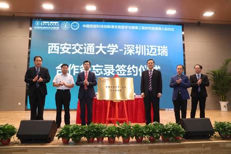 仪式中,西安交通大学王铁军副校长代表学校与深圳迈瑞科技有限公司签订合作备忘录,旨在推动双方在科学研究、人才培养等多方面的合作,深圳迈瑞同时向我校捐赠超声实验室,开启双发的实质性合作。