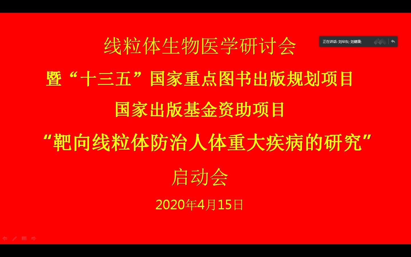 4月15日上午,线粒体生物医学研讨会暨国家出版基金资助项目“靶向线粒体防治人体重大疾病的研究”启动会顺利召开。会议以腾讯线上会议的形式召开,来自西安交通大学、西安交大出版社、中科院动物所、上海交通大学、空军军医大学、天津体育学院等六家单位的30余位线粒体领域专家及学院师生参加了此次会议。会议由西安交大生命学院线粒体生物医学研究所龙建纲教授主持。