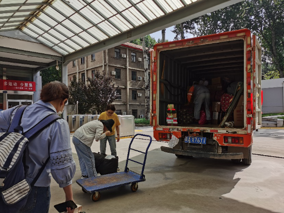 送走连续的阴雨天气,迎来了晴朗天空。在早上清新的空气中,同学们按计划早早地将行李搬运至宿舍楼下指定地点。9点30分,行李车准时到达各宿舍楼下,同学们按照计划将行李搬运到卡车上。搬运过程中,各位同学互帮互助,体现了生命学子良好的精神风貌。