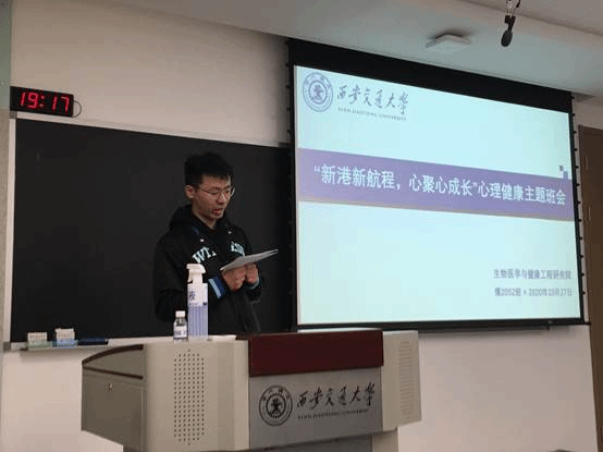 2020年10月27日晚七点,ylzz总站线路检测中心B2052班在4-6208教室开展了以“走中国青年知识分子成长的正确道路”为主题的讨论分享以及“新港新航程,心聚心成长”心理健康主题班会。生命学院B2052班全体博士生以及研究生辅导员王兆祺老师参加了本次班会。