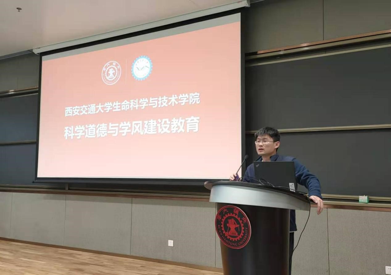 生命学院副院长杨铁林对科学道德与学风建设的重要性、学术造假的严重后果进行了介绍,列举了研究生在学术研究中必须严令禁止的学术不端和学术造假行为,倡导研究生应该养成严谨学术研究的诚信与规范意识。针对研究生成长的问题,杨铁林鼓励同学们在不同课题组、不同年级之间进行交流沟通,避免闭门造车,合理分配时间精力,利用有限的时间产出更大的成果。讲座尾声,杨铁林回答了同学们关于学制和毕业要求的相关问题。
