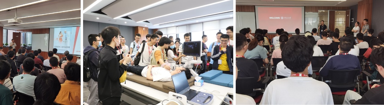 同学们还参观了公司监护仪部、超声部、体外诊断部、心电除颤部,参观期间部分同学还做了超声监测仪的测试体验。3位已经在迈瑞工作的校友为学弟学妹们分享了工作感受。
