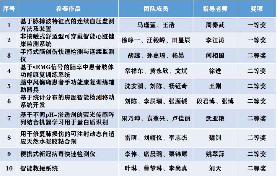 全国大学生生物医学工程创新设计竞赛是生物医学工程专业全国性大学生竞赛,由教育部高等学校教学指导委员会主办,旨在鼓励广大学生在医疗健康领域的创新探索,展现当代大学生、研究生在生物医学工程领域的创新实践成果。大赛从2014年开始举办,至今已是第六届。