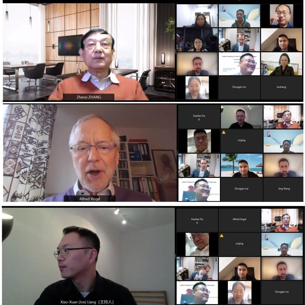 线上会议开幕式后,Alfred Vogel教授和张镇西教授分别做了题为“Free-electron-mediated modifications of biomolecules – from physical indicators to molecular mechanisms”(自由电子介导的生物分子修饰——从物理指标到分子机制)与 “Twenty years Sino-German cooperation and general introduction to the research topic”(中德合作二十年及中方研究课题概述)的报告。Vogel教授介绍了德方团队在这两年在超短脉冲激光生物分子改性方面的研究成果、张镇西教授介绍了中方团队近几年在激光辅助纳米药物以及组织成像方面的成果,并与中德双方参会人员分享了中方团队与德方二十多年的合作历程,特别是一些源自上世纪80年代的老照片,承载了双方共同的珍贵回忆,并指出现在的成果与中德合作是分不开的,中德双方互相学习,共同成长,并将在后续合作中结出丰硕的成果。