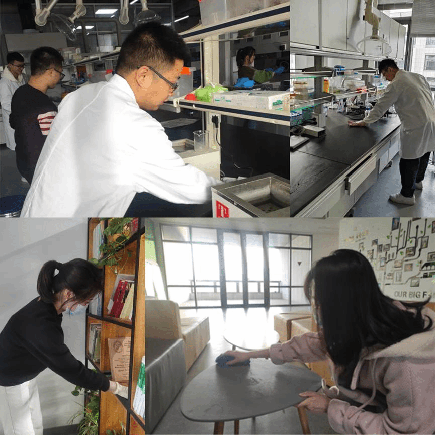 3月4日,仿生所党支部组织党员群众开展学习《西安交通大学新冠病毒感染师生防护手册》活动,引导党员群众养成良好的个人卫生习惯,将疫情防控要求内化于心,外化于行。光子所党支部开展“实验室保洁和卫生大扫除”劳动教育活动,党员们积极参与,分工明确,认真做好实验室的卫生清洁工作;2020级硕士生第一党支部成员针对18号楼工位,休憩角等公共区域进行了清扫整理,共同创建了整洁干净的学习环境;2020级硕士生第二党支部也积极参与到“实验室卫生清扫”活动中,着重对各个实验室杂乱位置、卫生死角等地方展开清洁。