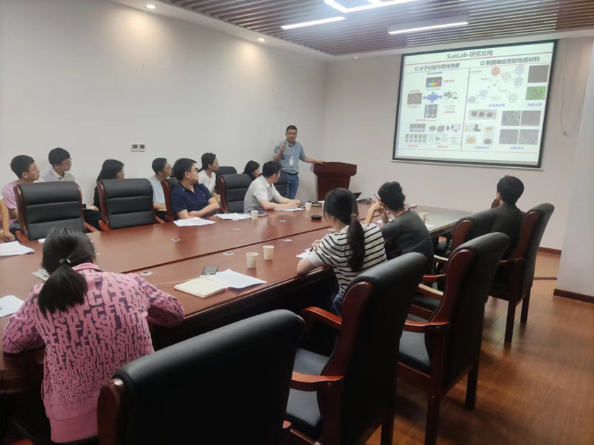 围绕党建与业务工作双融双促,支部通过组织生活搭建研究所科研交流合作平台,本次会议还邀请孙晓龙教授作题目为“荧光探针及生物/环境检测应用”首期课题交流报告,该报告介绍了课题组的研究方向和相关工作,详细讲述了包括葡萄糖、活性氧、生物电压、生物力学等荧光探针的最新应用进展。