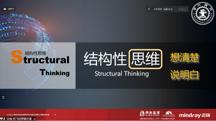 闫飞老师通过生动的案例分析与指导,引导学生了解什么是结构性思维、结构性思维的特点以及如何提升结构性思维能力,鼓励同学们在实践中感受结构性思维的魅力,在实践中养成结构性思维习惯,清晰、高效表达观点。