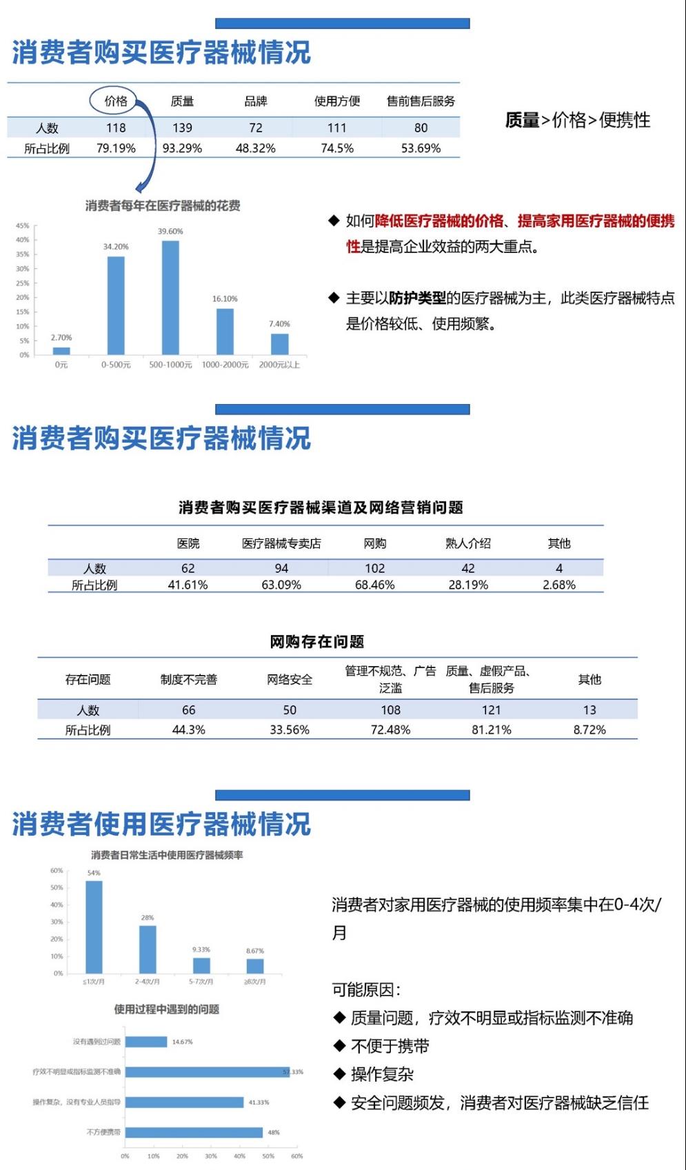 本次调研对不同群体都有借鉴意义:家用医疗器械企业如何降低医疗器械的价格、提高家用医疗器械的便携性是提高企业效益的两大重点;科研人员可关注康复类、中西结合类医疗器械领域前沿问题;后疫情时代,创业者可关注血氧监测,慢呼吸系统病监测治疗等热点。