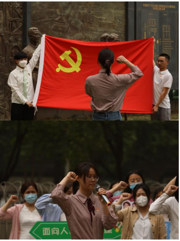 最后,全体党员在2020级硕士生第一党支部何晓李同志的带领下重温入党誓词,坚定入党初心。