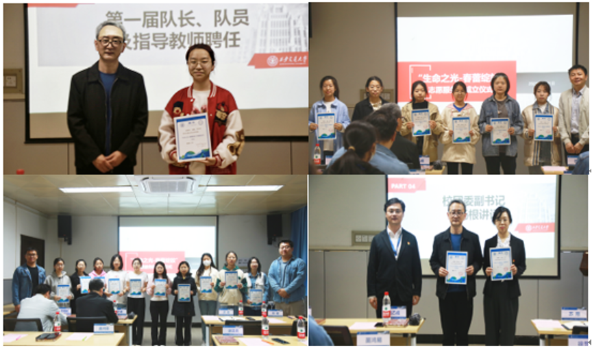 2023年初,西安交大生命医学领域的25名同学在受到中国儿童少年基金会、陕西妇女儿童发展基金会“春蕾阳光助学计划”的支持后,就萌生了回馈感恩社会、成立志愿服务队的想法。在生命学院、励志书院、宗濂书院的鼓励和支持下,4月21日上午,“生命之光-春蕾绽放”志愿服务队成立仪式在兴庆校区生命学院教二北308室举行,陕西妇儿基金会项目总监周乙成、生命学院党委副书记苏翔、校团委副书记石杨根,励志书院辅导员苗鸿易、宗濂书院辅导员徐显亮,“西行雪莲,同心雪域”团队队长张智杰,“生命之光-春蕾绽放” 团队全体队员参加,生命学院组织员杨媛主持仪式。