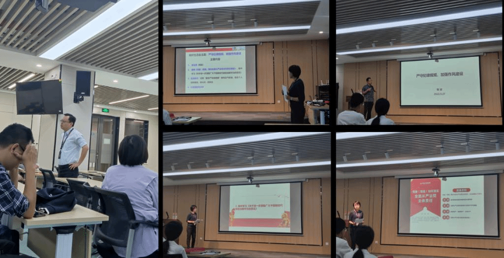 首先,由程波老师带来微党课《严守纪律规矩、加强作风建设》,为大家讲解新时代高校教师职业十不准行为,并强调高校老师要严于律己,恪守相关行为准则,尤其要严守学术道德底线,避免学术不端行为。
