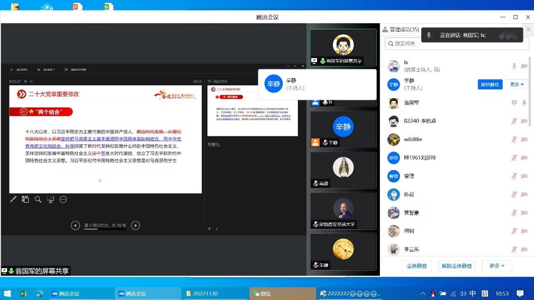 2022年11月30日,光子所党支部召开扩大会,深入学习二十大精神,光子所全体教工及博士党员参会,会议由支部书记翁国军主持。